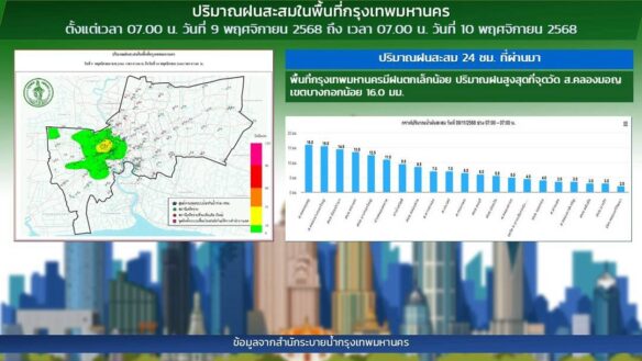 - 07:00 แผนที่แสดงปริมาณฝนในกรุงเทพฯย้อนหลัง 24 ชั่วโมงจากศูนย์ป้องกันน้ำท่วม กทม
