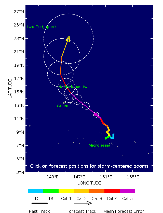 - 07:00 ภาพดาวเทียมย้อมสีจาก TWC แสดงกลุ่มฝนในเอเชียตะวันออกเฉียงใต้และโซนตะวันตกของมหาสมุทรแปซิฟิกเวลานี้