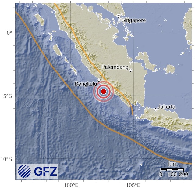 - 08:20 แผ่นดินไหวขนาด 4.9 (mb) ลึก 40 กม. พิกัด 102.61°E 4.68°S ในทะเลใกล้ชายฝั่งจังหวัดเบงกูลู เกาะสุมาตรา ประเทศอินโดนีเซีย