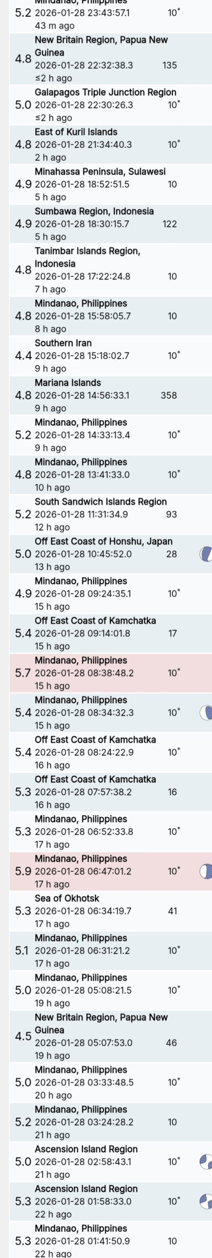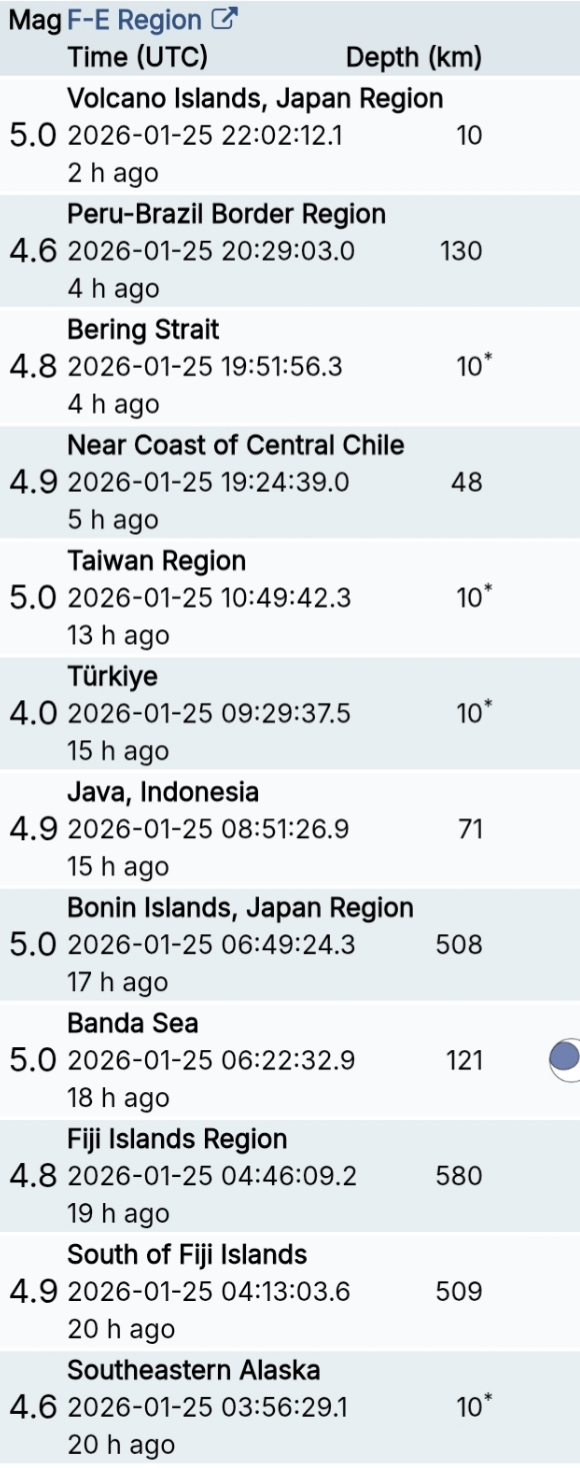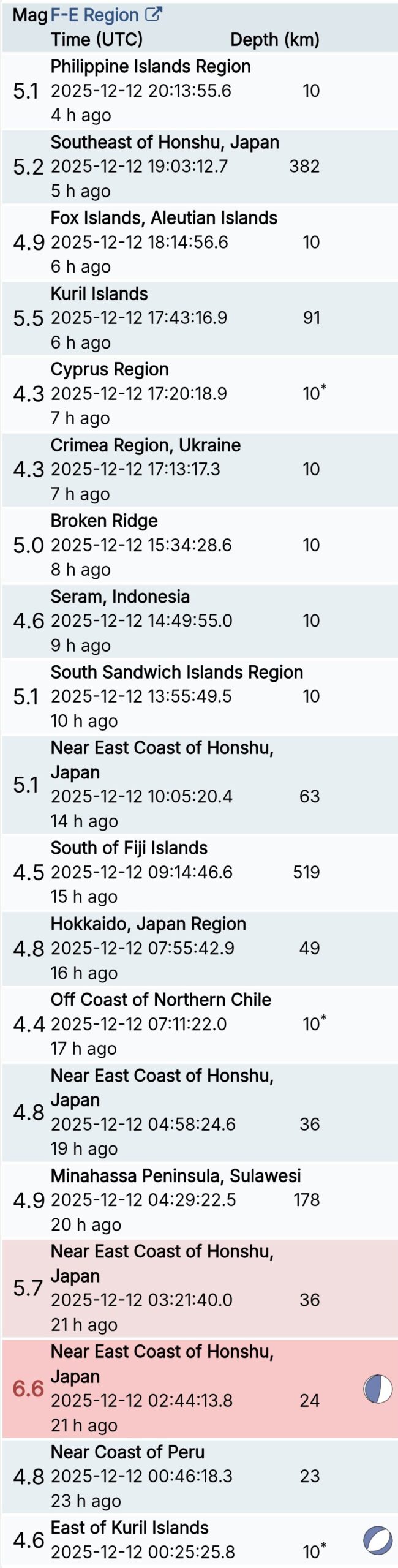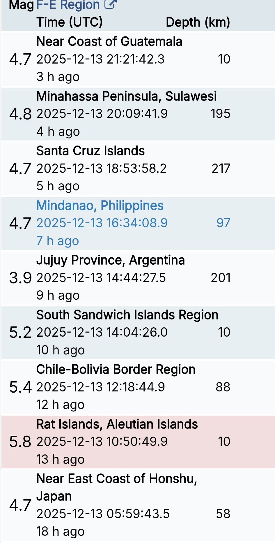 สรุปรายการแผ่นดินไหวและอาฟเตอร์ช็อกทั่วโลกจาก Geofon เยอรมนี ช่วง 07:00 เมื่อวานนี้ ถึง 07:00 เช้าวันนี้ (เวลาในตารางเป็น UTC ต้องบวก 7 ชั่วโมงให้เป็นเวลาไทย)