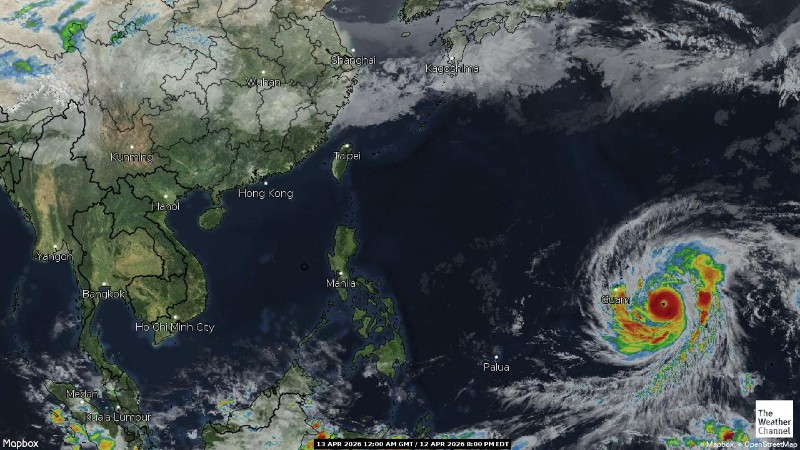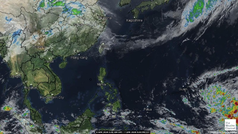 • 08:00 ภาพดาวเทียมย้อมสีจาก TWC แสดงกลุ่มฝนในเอเชียตะวันออกเฉียงใต้และโซนตะวันตกของมหาสมุทรแปซิฟิกเวลานี้