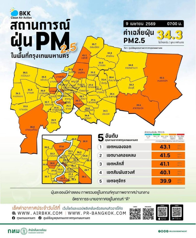 • 07:00 สถานการณ์ฝุ่น PM 2.5 ในกรุงเทพฯ