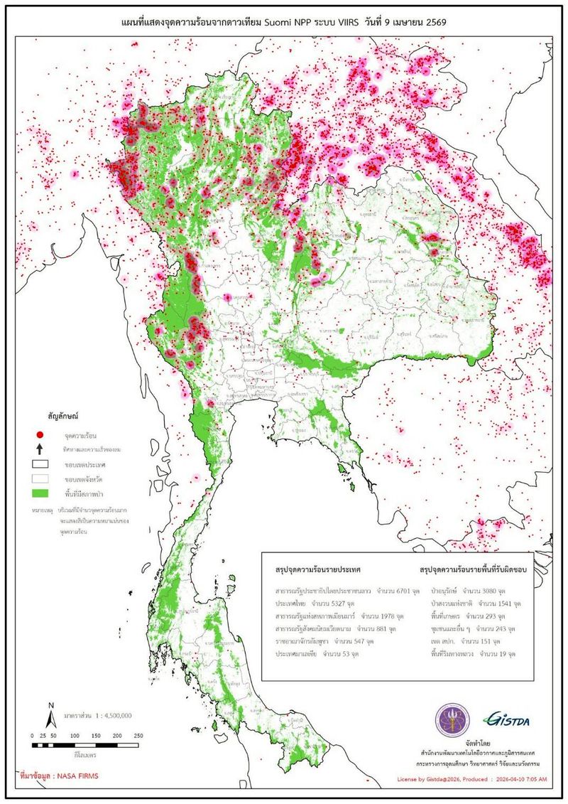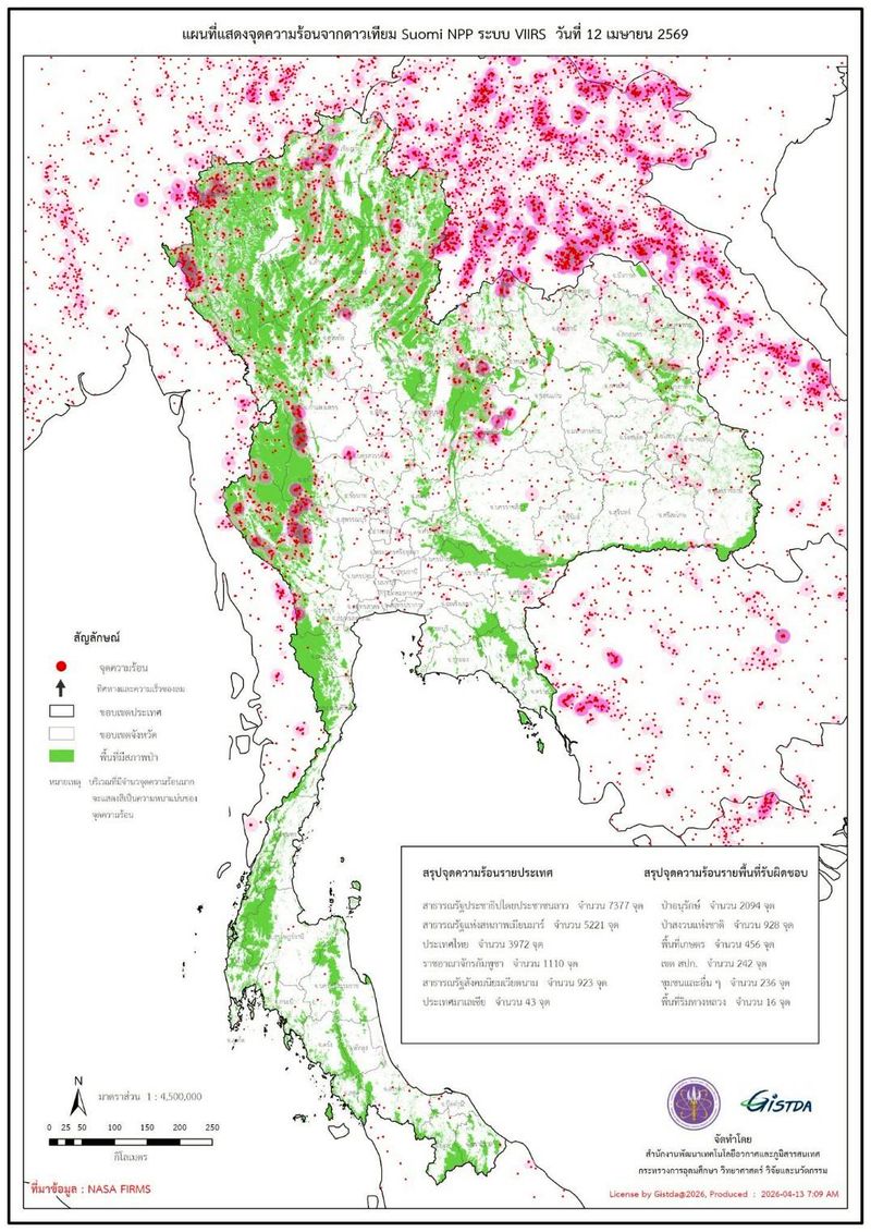 • 23:00 23:00 จุดความร้อนในประเทศไทยและประเทศเพื่อนบ้าน โดย GISTDA