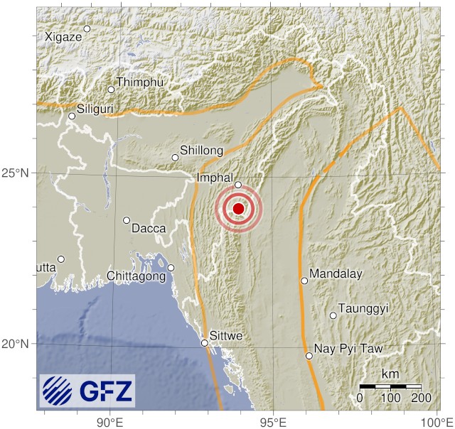 • 15:48 แผ่นดินไหวขนาด 4.9 (mb) ลึก 47 กม.พิกัด 92.78°E 24.66°N เมืองไฮลากันดี (Hailakandi) รัฐอัสสัม ประเทศอินเดีย