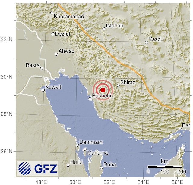 • 02:06 แผ่นดินไหวขนาด 4.6 (mb) ลึก 10 กม.พิกัด 51.62°E 29.39°N ประเทศอิหร่าน