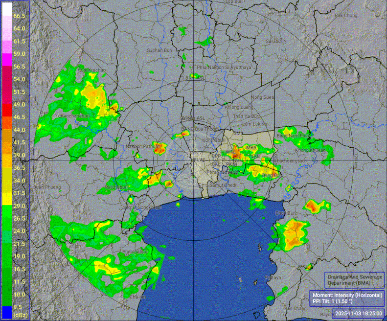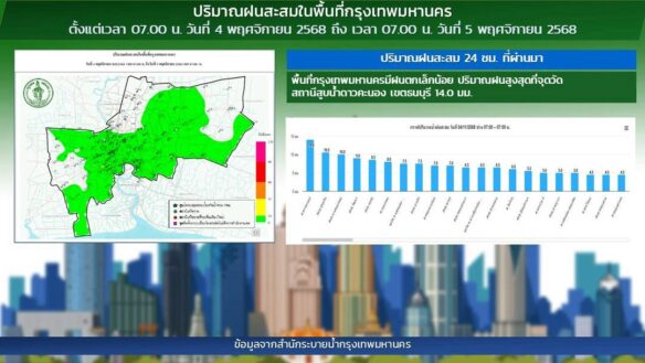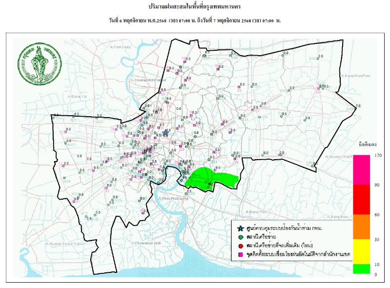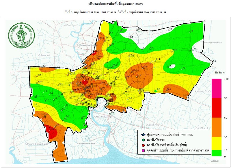 - 07:00 แผนที่แสดงปริมาณฝนในกรุงเทพฯย้อนหลัง 24 ชั่วโมงจากศูนย์ป้องกันน้ำท่วม กทม