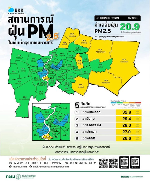 - 07:00 สถานการณ์ฝุ่น PM₂.₅ ในกรุงเทพฯ