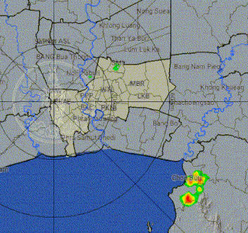 - 03:20 เรดาร์ตรวจฝนจากสำนักการระบายน้ำ กทม ที่หนองแขม (แบบเคลื่อนไหว) แสดงกลุ่มฝนที่ตกในกรุงเทพฯและปริมณฑลรวมทั้งบางจังหวัดในภาคกลางตอนล่างและภาคตะวันออกตลอด 55 นาทีที่ผ่านมา