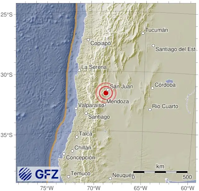 - 01:12 แผ่นดินไหวขนาด 4.5 (mb) ลึก 10 กม.พิกัด 68.70°W 31.82°S รัฐซานฮวน ประเทศอาร์เจนตินา
