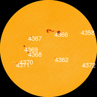 - จำนวน พิกัดตำแหน่ง ขนาด และหมายเลข ของจุดมืด ซึ่งเป็นจุดปฏิกิริยาบนดวงอาทิตย์วันนี้