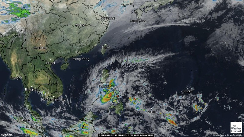 - 04:30 ภาพดาวเทียมย้อมสีจาก TWC แสดงกลุ่มฝนในเอเชียตะวันออกเฉียงใต้และโซนตะวันตกของมหาสมุทรแปซิฟิกเวลานี้