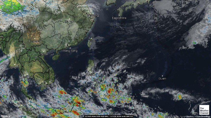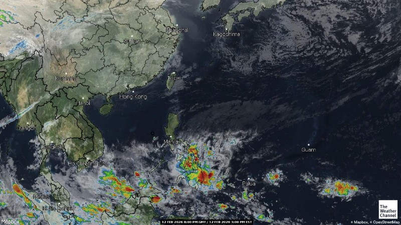 - 03:00 ภาพดาวเทียมย้อมสีจาก TWC แสดงกลุ่มฝนในเอเชียตะวันออกเฉียงใต้และโซนตะวันตกของมหาสมุทรแปซิฟิกเวลานี้