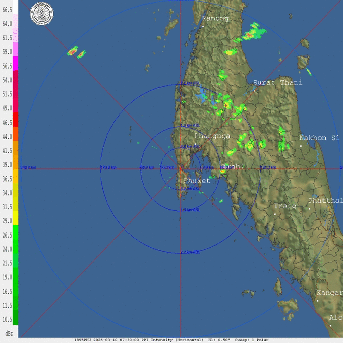 - 01:00 หย่อมความกดอากาศต่ำกำลังแรง 93W ในทะเลฟิลิปปินส์ ความเร็วลมใกล้ศูนย์กลาง 20 น็อต ความกดอากาศ 1003 hPa พิกัดล่าสุดอยู่ที่ 12.9°N 131.7°E แนวโน้มทวีกำลัง เคลื่อนตัวไปทางตะวันตก