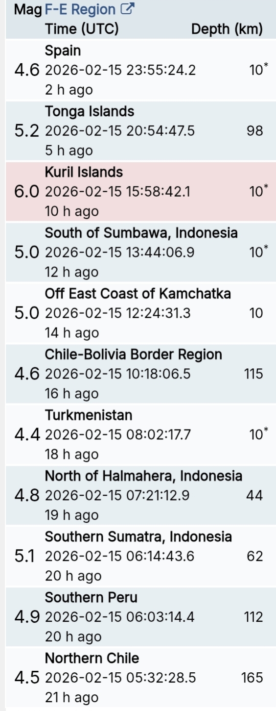 สรุปรายการแผ่นดินไหวและอาฟเตอร์ช็อกทั่วโลกจาก Geofon เยอรมนี ช่วง 07:00 เมื่อวานนี้ ถึง 07:00 เช้าวันนี้ (เวลาในตารางเป็น UTC ต้องบวก 7 ชั่วโมงให้เป็นเวลาไทย)