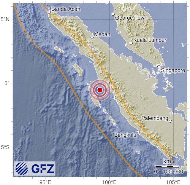 - 13:00 แผ่นดินไหวขนาด 4.9 (mb) ลึก 57 กม.พิกัด 99.26°E 0.54°S ในทะเลใกล้ชายฝั่งจังหวัดสุมาตราตะวันตก เกาะสุมาตรา ประเทศอินโดนีเซีย