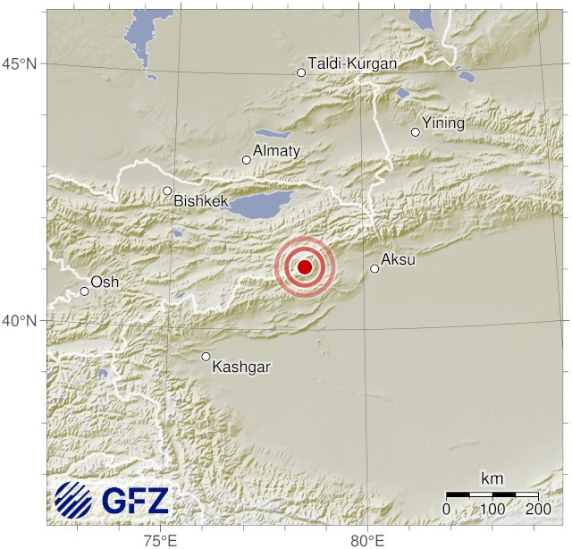 - 14:14 แผ่นดินไหวขนาด 4.7 (mb) ลึก 10 กม.พิกัด 78.48°E 41.23°N จังหวัดอักซู เขตปกครองตนเองซินเจียงอุยกูร์