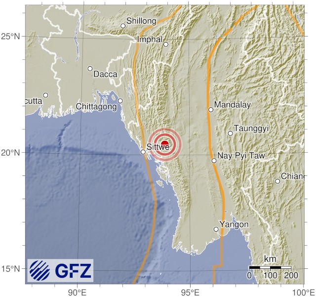 - 05:50 แผ่นดินไหวขนาด 4.2 (mb) ลึก 39 กม.พิกัด 93.87°E 20.46°N ประเทศพม่า