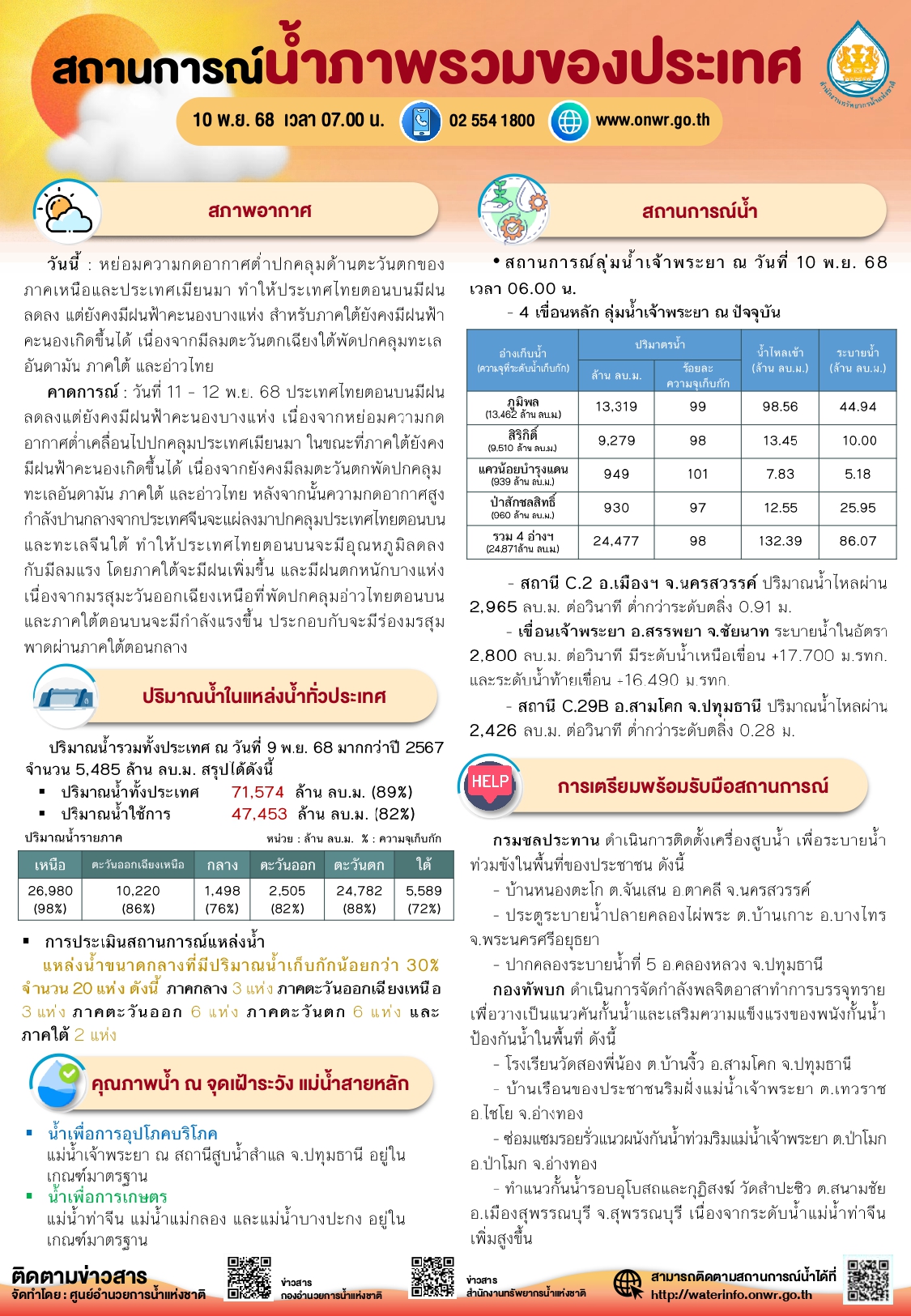 • 06:00 ภาพรวมสถานการณ์น้ำในประเทศ