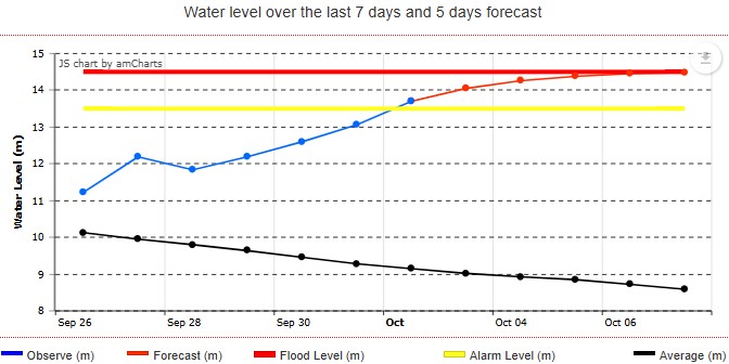 - 16:00 คาดการณ์ว่า ในช่วงวันที่ 3-7 ต.ค.68 ระดับน้ำโขงที่ อ.โขงเจียม จ.อุบลราชธานี จะเพิ่มสูงขึ้นเกือบเท่าตลิ่ง จึง ขอให้เฝ้าระวังผลกระทบที่อาจจะเกิดขึ้นได้ต่อไป