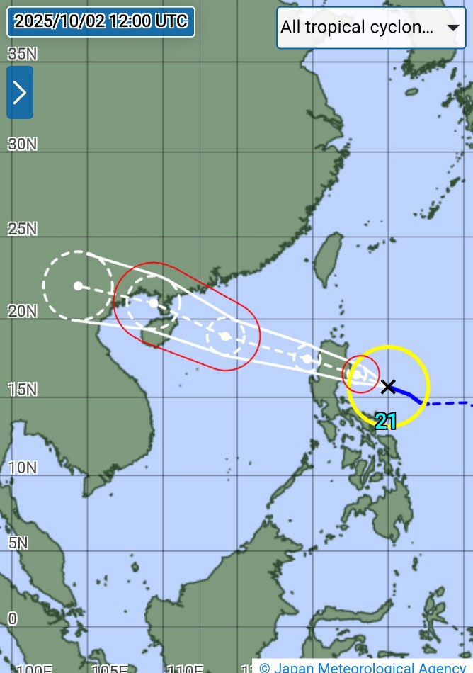 - 19:00 พายุโซนร้อน “มัตโม”Matmo” ในทะเลฟิลิปปินส์ ความเร็วลมใกล้ศูนย์กลางเพิ่มขึ้นเป็น 40 น็อต ความกดอากาศ 996 hPa พิกัดล่าสุดอยู่ที่ 15.7°N 125.0°E แนวโน้มขึ้นฝั่งเกาะลูซอน จากนั้นลงสู่ทะเลจีนใต้ เคลื่อนตัวขึ้นฝั่งคาบสมุทรเหลยโจว มณฑลกวางตุ้ง