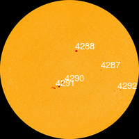 • จำนวนพิกัดตำแหน่ง ขนาด และหมายเลข ของจุดมืด ซึ่งเป็นจุดปฏิกิริยาบนดวงอาทิตย์วันนี้