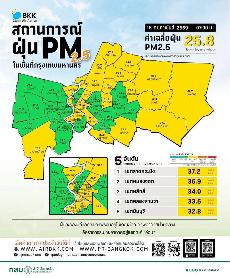 - 07:00 สถานการณ์ฝุ่น PM 2.5 ในกรุงเทพฯ