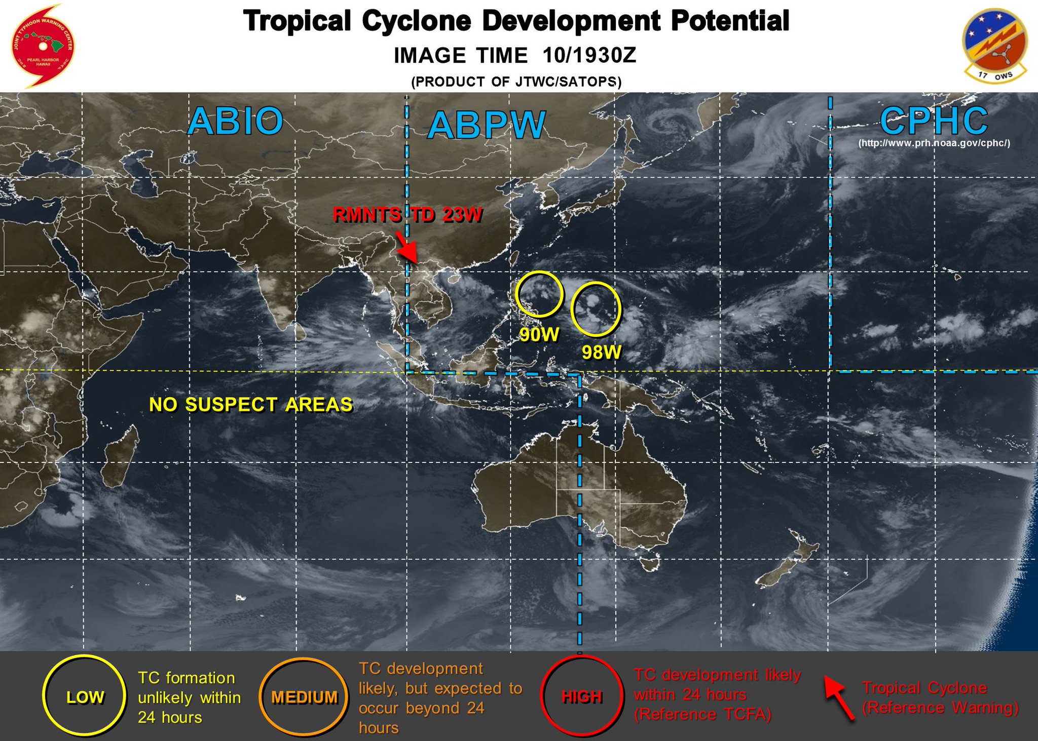 - 12:00 JTWC จับตาหย่อมความกดอากาศต่ำ 91B ใกล้ศรีกลังกาและ 96S โดยเฉพาะ 95S ใกล้เกาะชวาที่มีโอกาสกลายเป็นพายุดีเปรสชัน