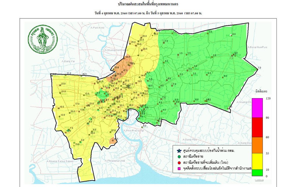 - 07:00 กราฟฟิคจากสำนักระบายน้ำ แสดงปริมาณฝนที่ตกใน กทม 24 ชม.ที่ผ่านมา