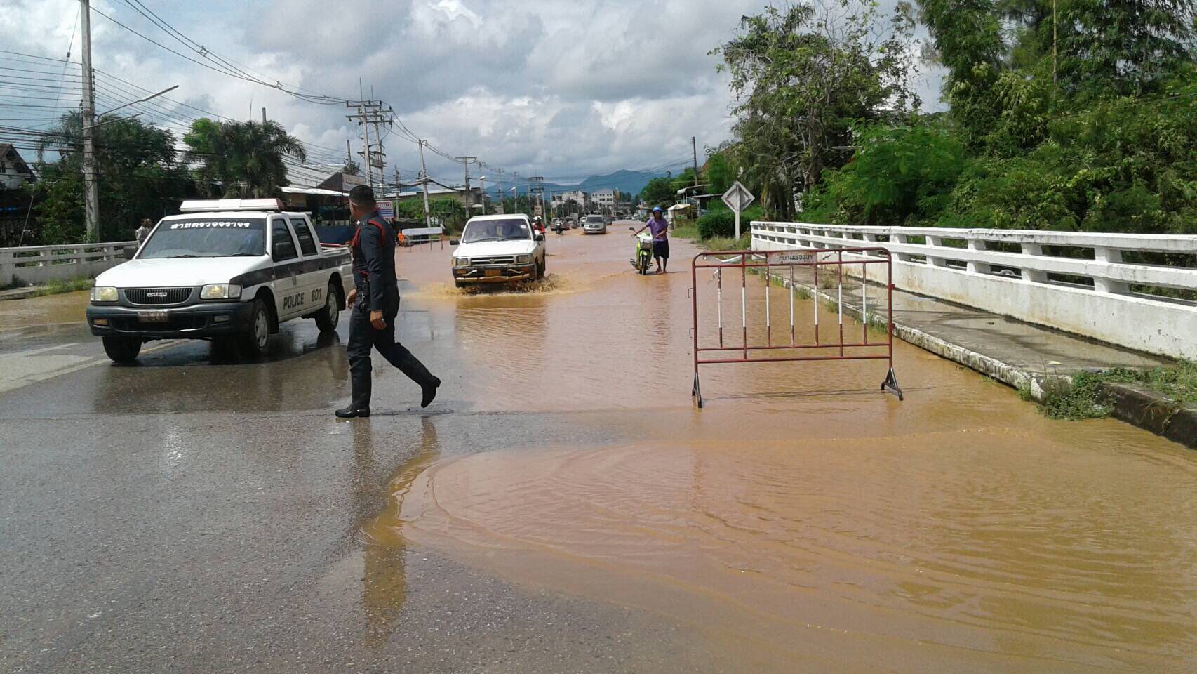 - 14:30 สะพานข้ามแม่น้ำสายบุรี ที่บ้านน้อมเกล้า อ.สายบุรี จ.ปัตตานี น้ำไหลท่วมข้ามสะพาน รถทุกชนิดไม่สามารถสัญจรได้ cr.AirSky7