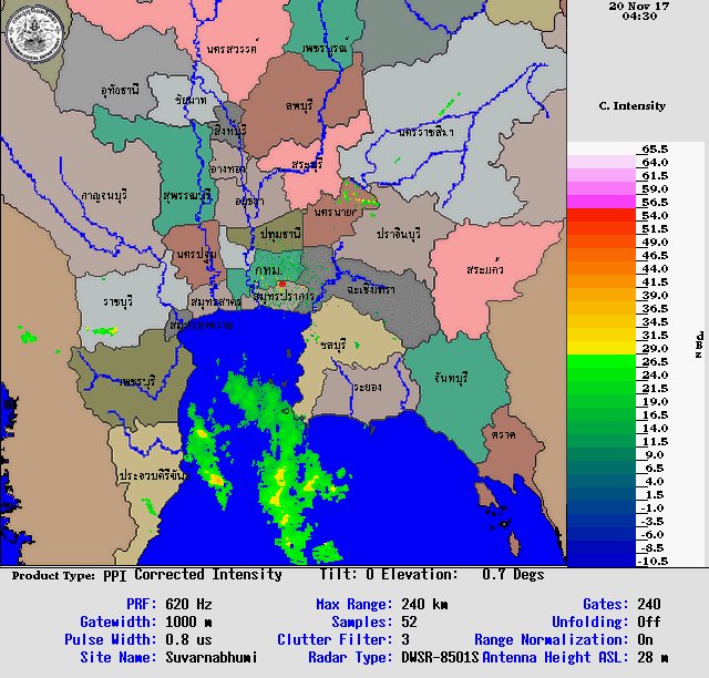 - แผนที่อากาศจากกรมอุตุวันนี้ ตีหนึ่ง / เจ็ดโมงเช้า / บ่ายโมง / หนึ่งทุ่ม
