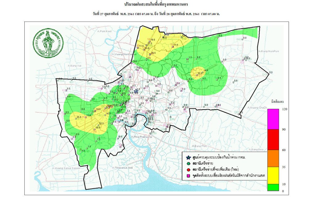 - 07:00 กราฟฟิคจากสำนักระบายน้ำ แสดงปริมาณฝนที่ตกใน กทม 24 ชม.ที่ผ่านมา