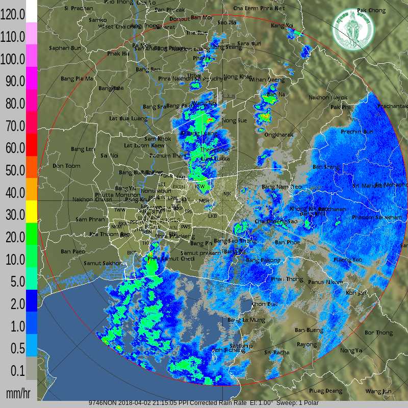 - 21:20 กลุ่มฝนเคลื่อนเข้ามาตกใน กทม ปริมณฑล ภาคกลางตอนล่างและภาคตะวันออก 2 ชั่วโมงที่ผ่านมา