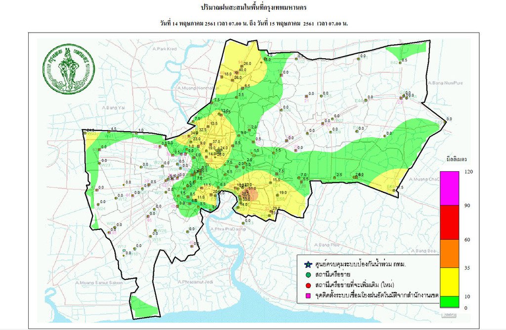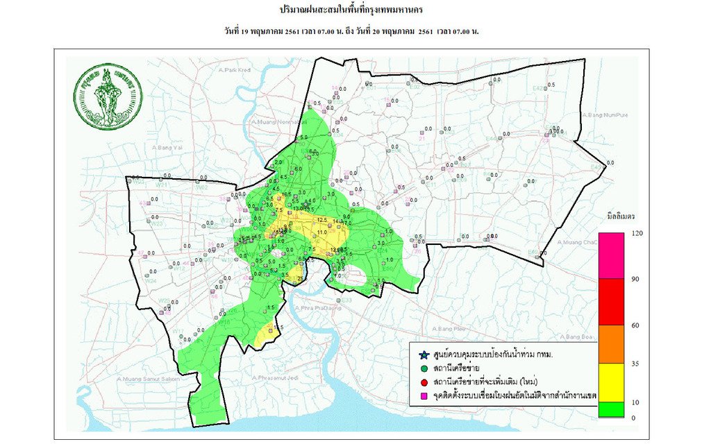 - 07:00 กราฟฟิคจากสำนักระบายน้ำ แสดงปริมาณฝนที่ตกใน กทม 24 ชม.ที่ผ่านมา