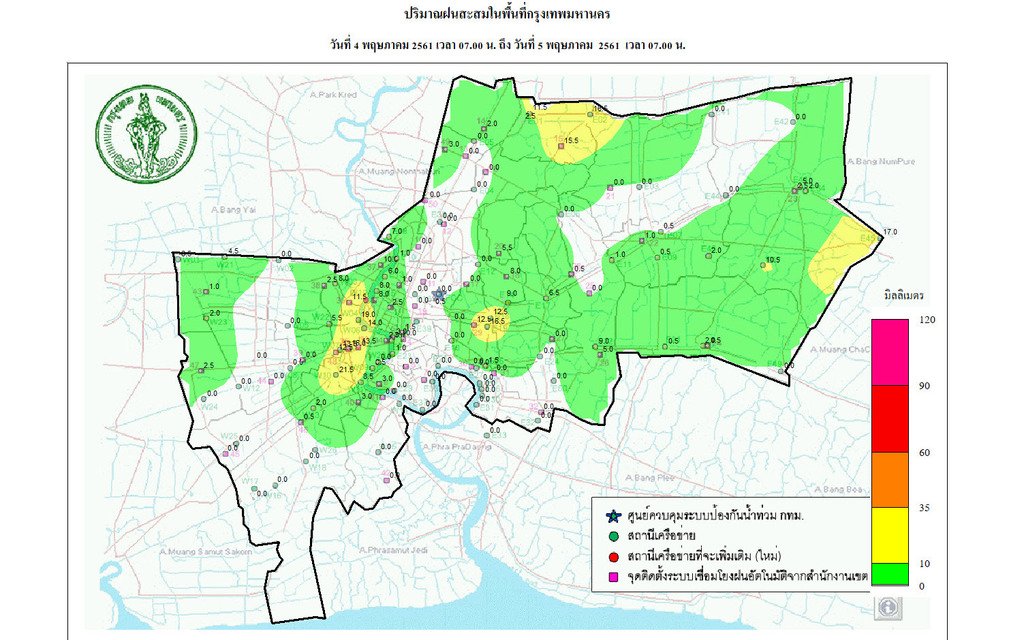 - 07:00 กราฟฟิคจากสำนักระบายน้ำ แสดงปริมาณฝนที่ตกใน กทม 24 ชม.ที่ผ่านมา