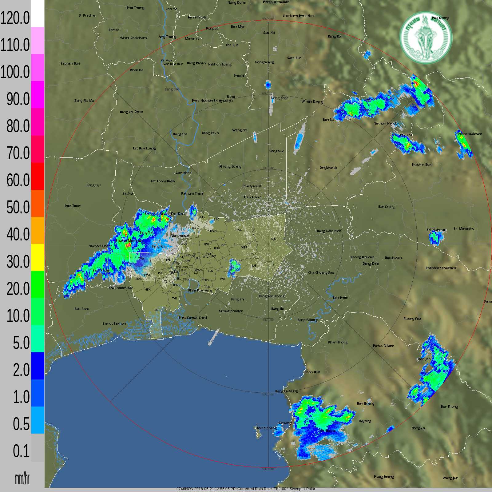 - 13:00 กทม มีฝนเล็กน้อยถึงปานกลางเขตตลิ่งชัน ต่อเนื่อง อ.สามพราน อ.บางกรวย อ.บางใหญ่ อ.บางบัวทอง อ.ปากเกร็ด เมืองนนทบุรี อีกกลุ่มบางส่วนเขตลาดกระบัง สะพานสูง ตอนบนเขตประเวศ เคลื่อนตัวทิศเหนือ เข้าเขตสะพานสูง มีนบุรี แนวโน้มคงที่ ดูภ่าพเรดาร์