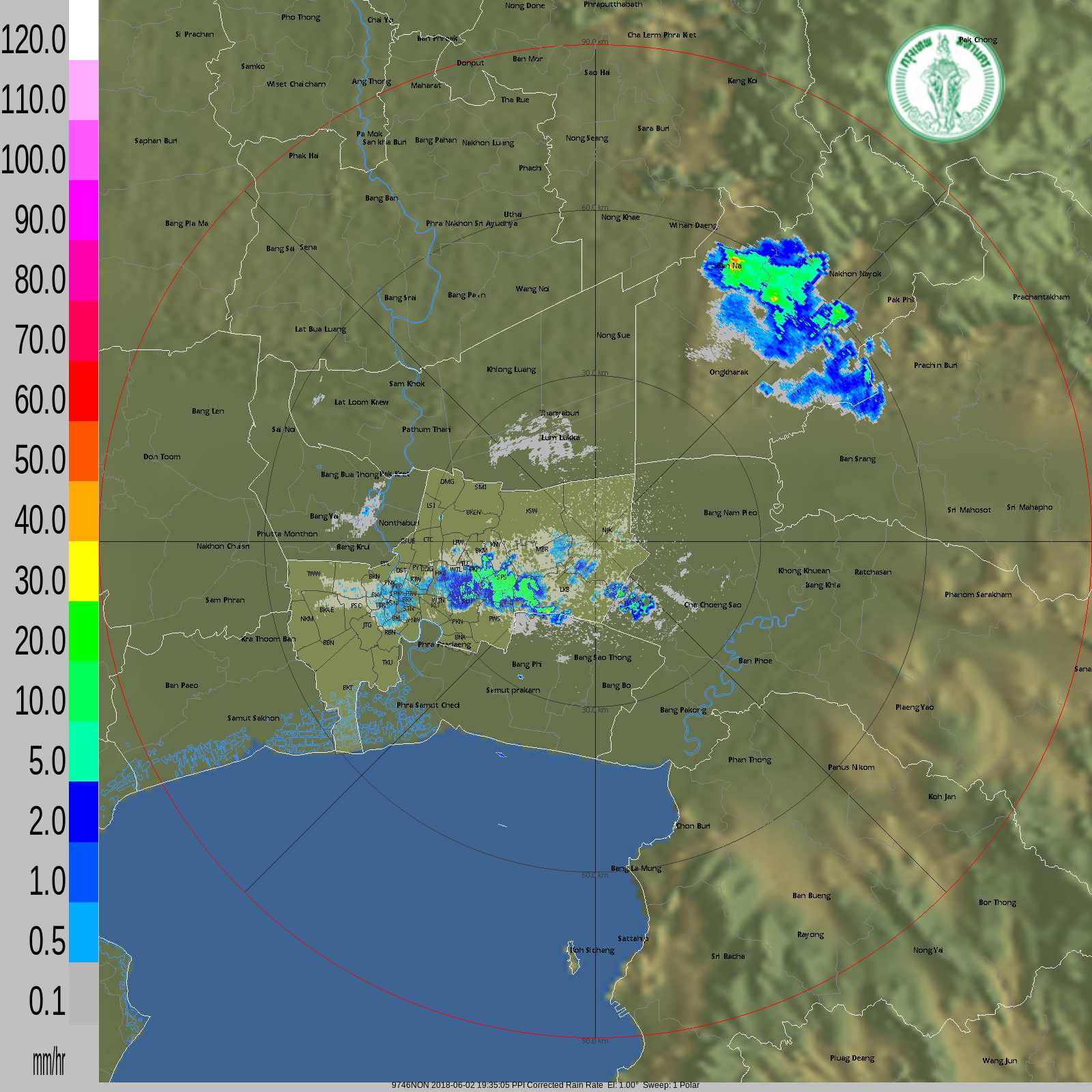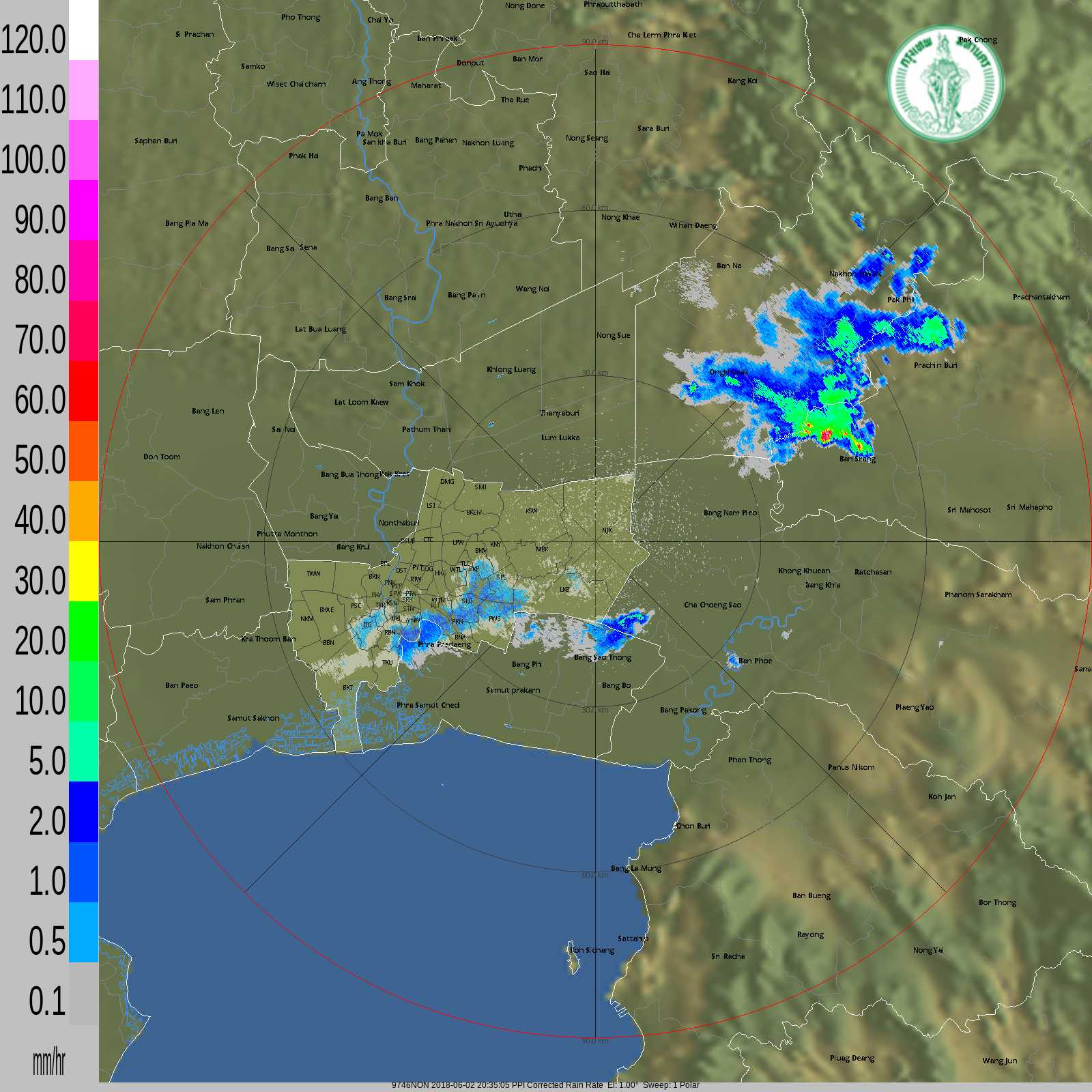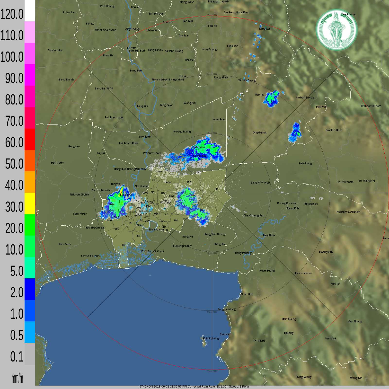 - 18:45 กทม มีฝนปานกลางเขตหนองแขม บางแค ภาษีเจริญ ทวีวัฒนา ตลิ่งชัน ต่อเนื่อง อ.บางกรวย จ.นนทบุรี และฝนปานกลางเขตลาดกระบัง สะพานสูง มีนบุรี คันนายาว คลองสามวา ดูภาพเรดาร์