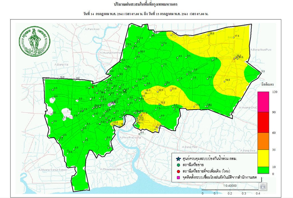- 07:00 กราฟฟิคจากสำนักระบายน้ำ แสดงปริมาณฝนที่ตกใน กทม 24 ชม.ที่ผ่านมา