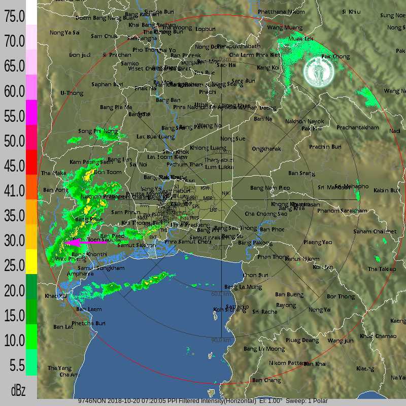 - 06:00 กทม. มีฝนเล็กน้อย พื้นฝั่งธนบุรี พื้นที่ฝั่งพระนครชั้นใน / ฝนเล็กน้อย จ.นครปฐม จ.สมุทรสงคราม จ.สมุทรสาคร จ.ราชบุรี อ่าวไทย ดูภาพเรดาร์