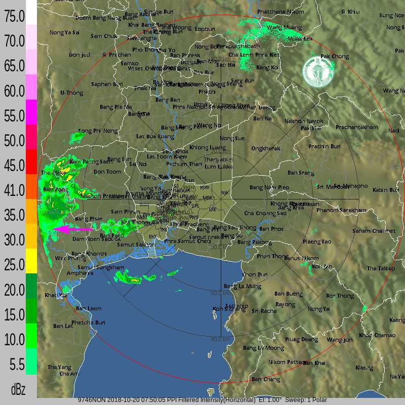 - 01:50 กลุ่มฝนหนักเคลื่อนจากอ่าวไทยเข้าสมุทรสงคราม สมุทรสาคร