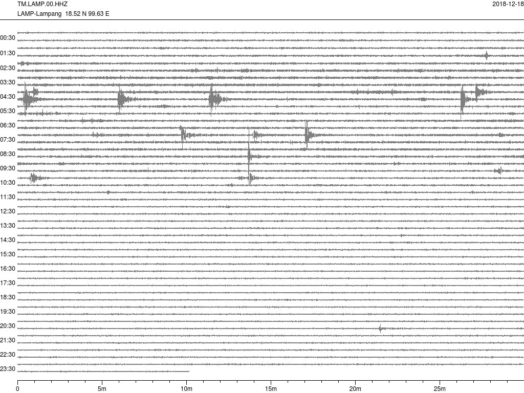 - กราฟแผ่นดินไหวจากสถานี เขื่อนกิ่วลม จ.ลำปาง (LAMP) ของสำนักเฝ้าระวังฯ กรมอุตุฯ จากเวลา 07:00 เมื่อวานนี้ถึง 07:00 เช้านี้