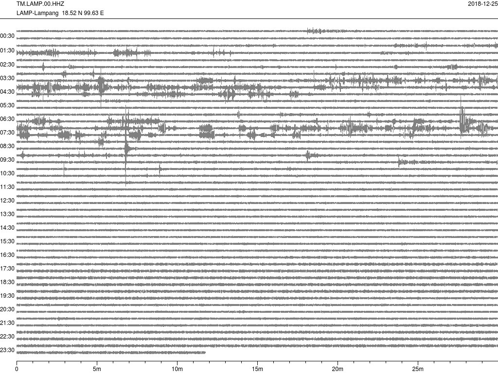 - กราฟแผ่นดินไหวจากสถานี เขื่อนกิ่วลม จ.ลำปาง (LAMP) ของสำนักเฝ้าระวังฯ กรมอุตุฯ จากเวลา 07:00 เมื่อวานนี้ถึง 07:00 เช้านี้