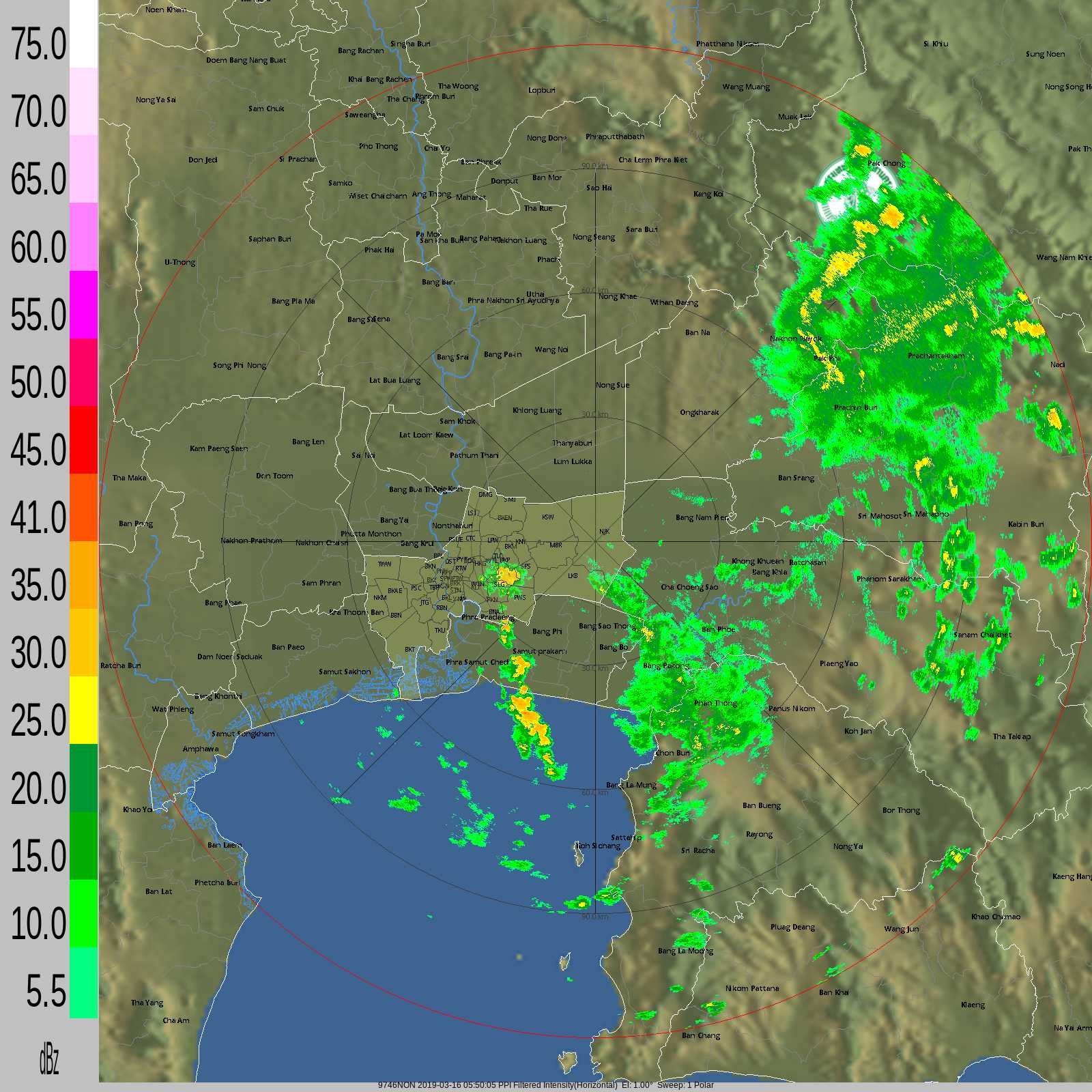 - 02:30 กทม.มีฝนเล็กน้อยเขตหนองจอก และฝนเล็กน้อยถึงปานกลาง อ.บางเสาธง อ.บางบ่อ อ.บางปะกง เคลื่อนทิศตะวันตก แนวโน้มคงที่ ดูภาพเรดาร์