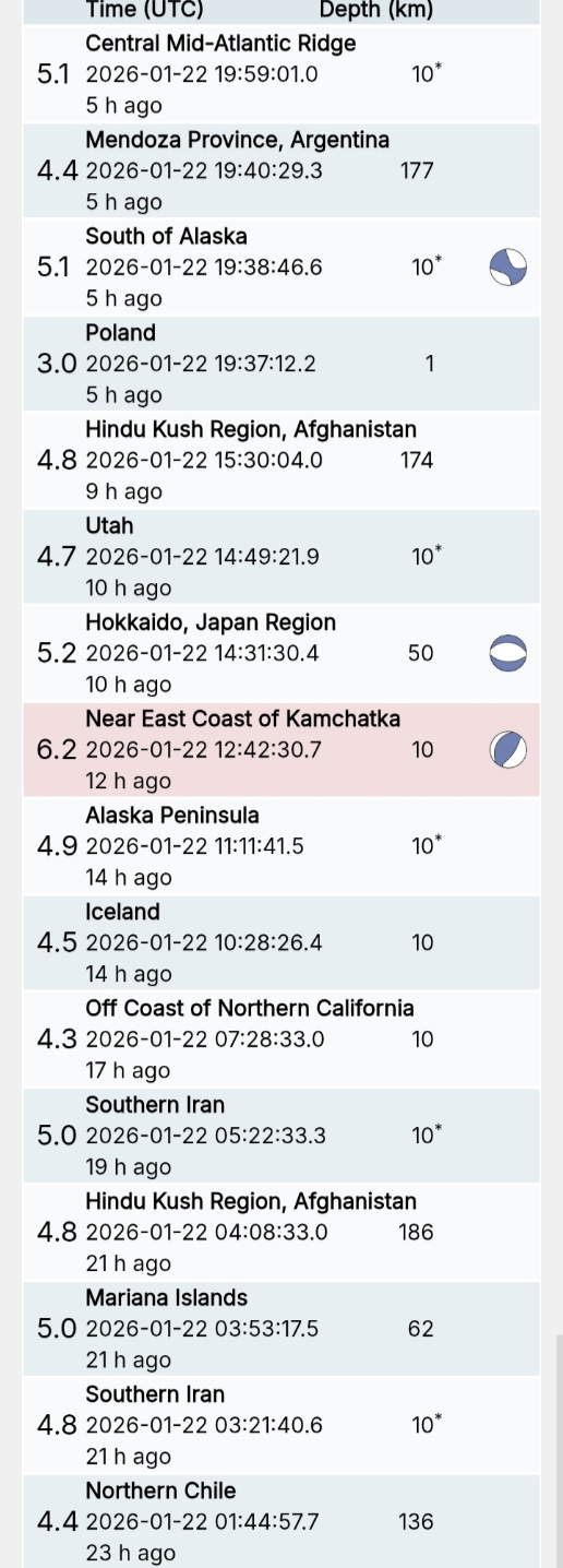 สรุปรายการแผ่นดินไหวและอาฟเตอร์ช็อกทั่วโลกจาก Geofon เยอรมนี ช่วง 07:00 เมื่อวานนี้ ถึง 07:00 เช้าวันนี้ (เวลาในตารางเป็น UTC ต้องบวก 7 ชั่วโมงให้เป็นเวลาไทย)