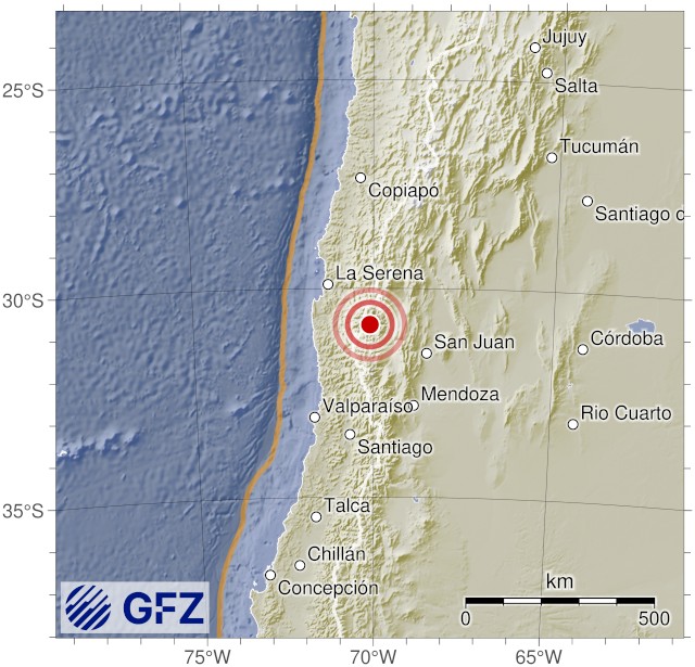 - 05:11 แผ่นดินไหวขนาด 4.6 (mb) ลึก 119 กม.พิกัด 70.10°W 30.87°S เทือกเขาแอนดีส ภูมิภาคโกกิมโบ ประเทศชิลี