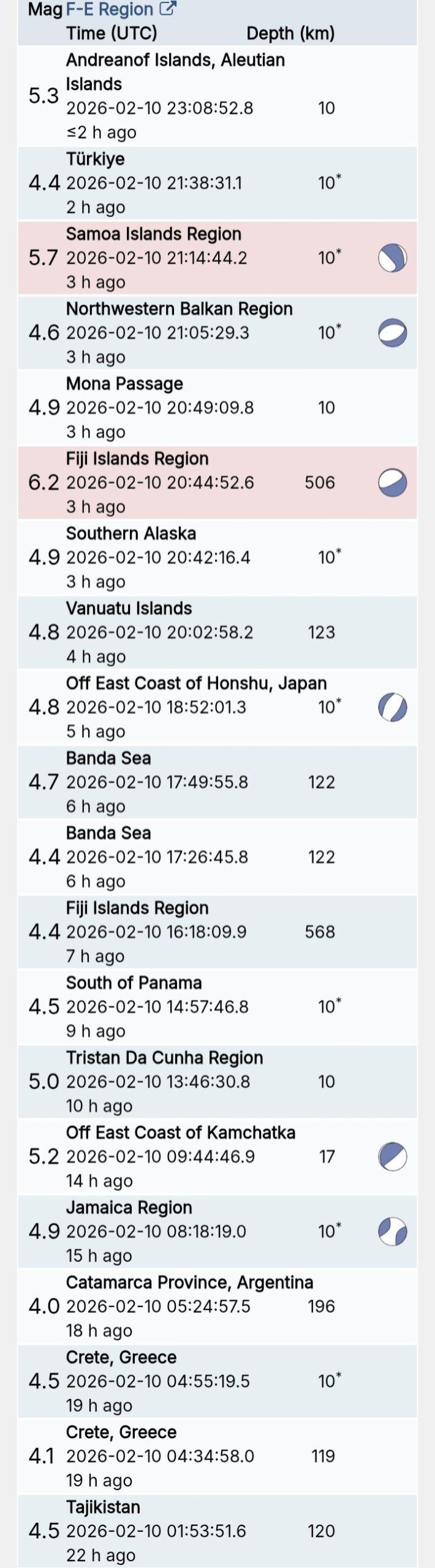 สรุปรายการแผ่นดินไหวและอาฟเตอร์ช็อกทั่วโลกจาก Geofon เยอรมนี ช่วง 07:00 เมื่อวานนี้ ถึง 07:00 เช้าวันนี้ (เวลาในตารางเป็น UTC ต้องบวก 7 ชั่วโมงให้เป็นเวลาไทย)