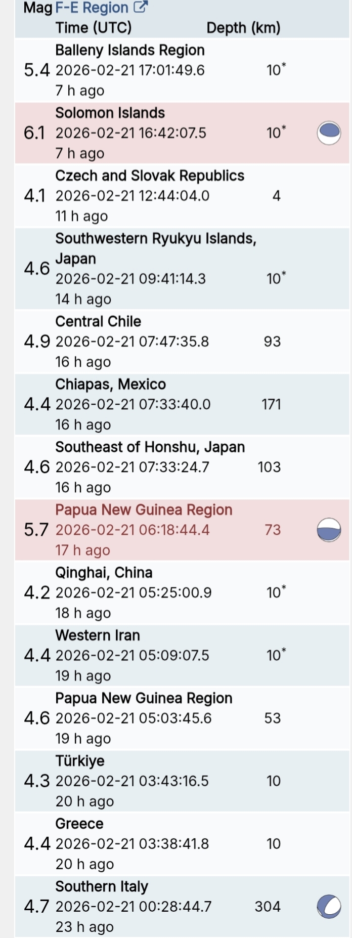 สรุปรายการแผ่นดินไหวและอาฟเตอร์ช็อกทั่วโลกจาก Geofon เยอรมนี ช่วง 07:00 เมื่อวานนี้ ถึง 07:00 เช้าวันนี้ (เวลาในตารางเป็น UTC ต้องบวก 7 ชั่วโมงให้เป็นเวลาไทย)