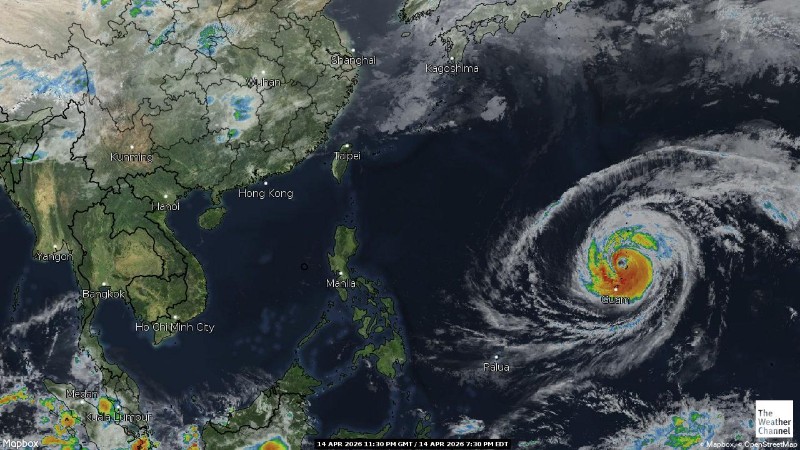 - 06:30 ภาพดาวเทียมย้อมสีจาก TWC แสดงกลุ่มฝนในเอเชียตะวันออกเฉียงใต้และโซนตะวันตกของมหาสมุทรแปซิฟิกเวลานี้