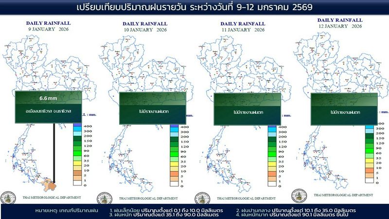 - 07:00 แผนที่เปรียบเทียบพื้นที่ที่มีปริมาณฝนสูงสุดในประเทศไทยรอบ 24 ชั่วโมงย้อนหลัง 4 วัน