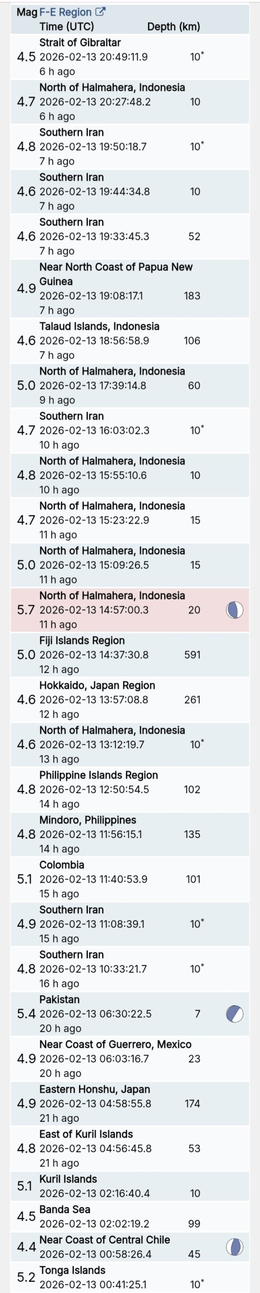 สรุปรายการแผ่นดินไหวและอาฟเตอร์ช็อกทั่วโลกจาก Geofon เยอรมนี ช่วง 07:00 เมื่อวานนี้ ถึง 07:00 เช้าวันนี้ (เวลาในตารางเป็น UTC ต้องบวก 7 ชั่วโมงให้เป็นเวลาไทย)
