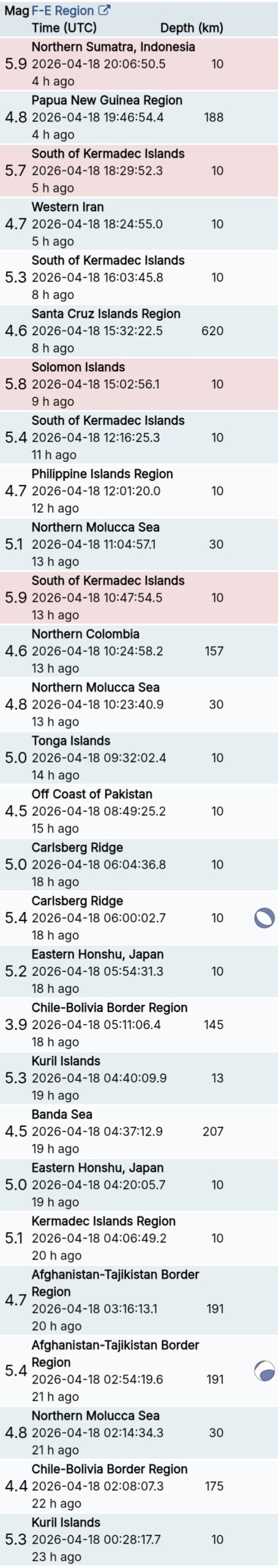 สรุปรายการแผ่นดินไหวและอาฟเตอร์ช็อกทั่วโลกจาก Geofon เยอรมนี ช่วง 07:00 เมื่อวานนี้ ถึง 07:00 เช้าวันนี้ (เวลาในตารางเป็น UTC ต้องบวก 7 ชั่วโมงให้เป็นเวลาไทย)